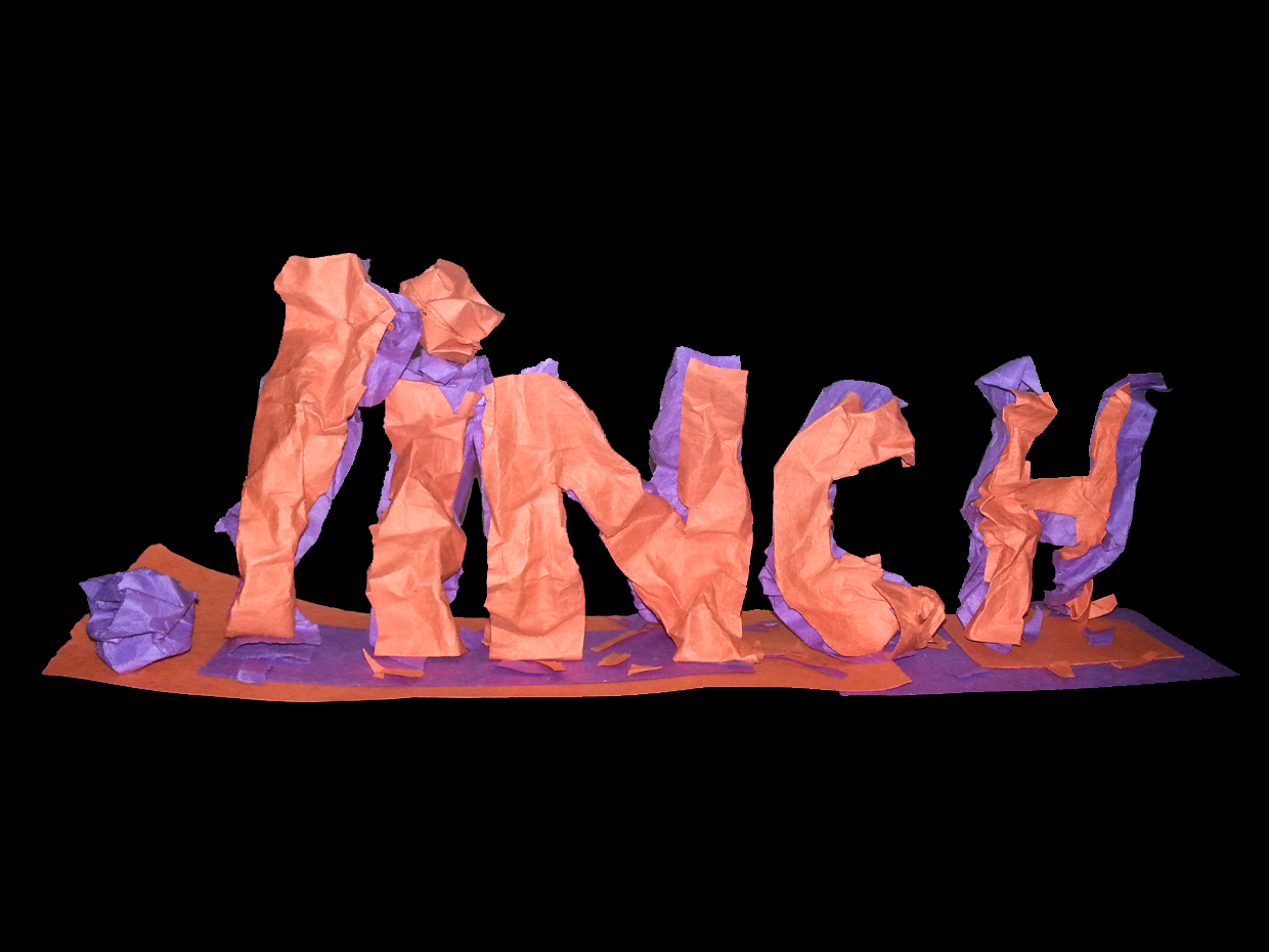 It was made for a typography contest in my first design class in grad school. 12 students in 6 pairs. Each pair had to think of one word and express this word using whatever forms of design. Mine was "pinch", so I used color paper and pinched them into the shape of this word. My "PiNCH" stood out from the rest and won the 1st place and 2 packs of Snickers. Not sure why the lowercase "i", maybe because my insensitiveness of the language as a foreign student at that time, or could be proud of that finishing touch of that little dot on top.