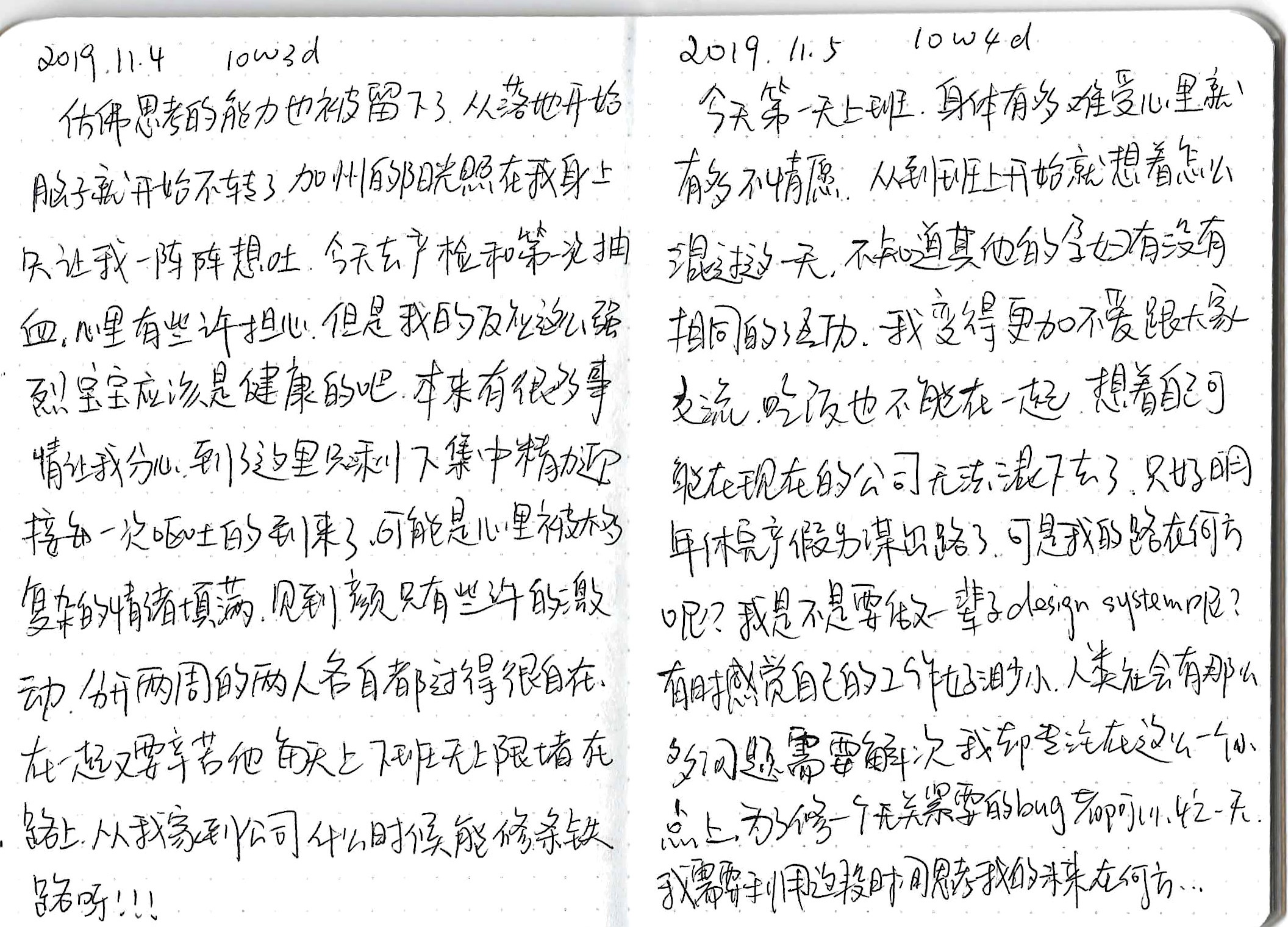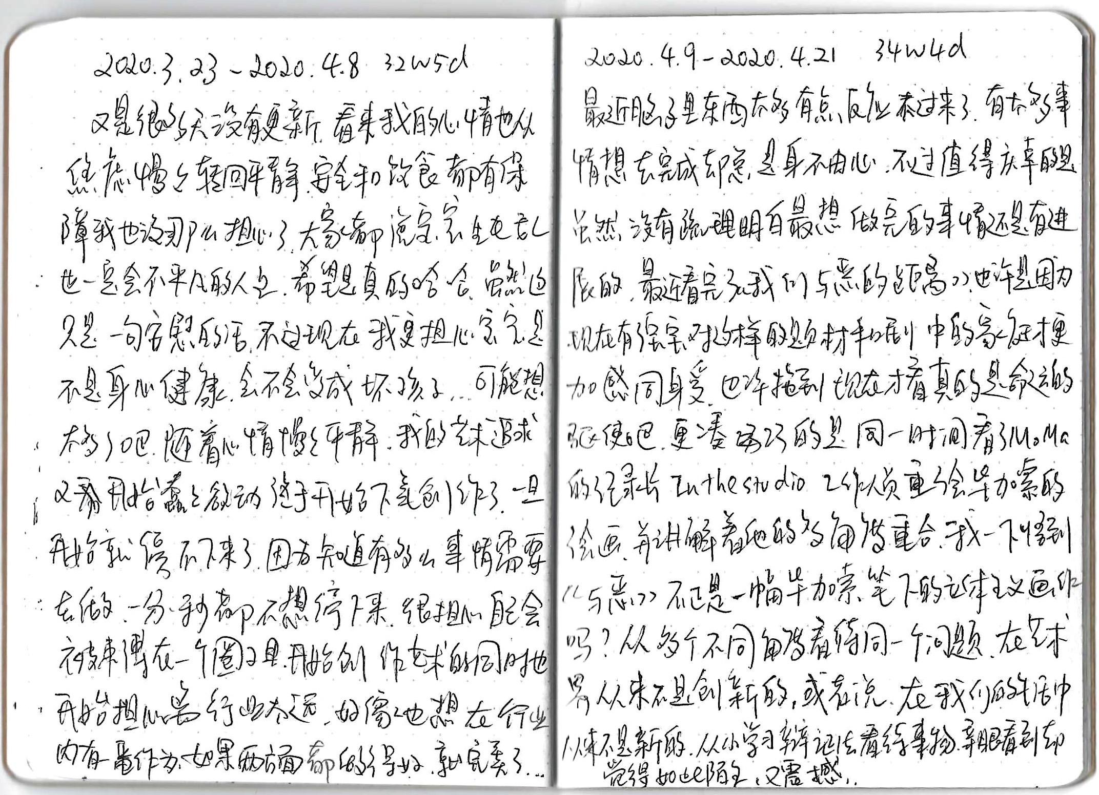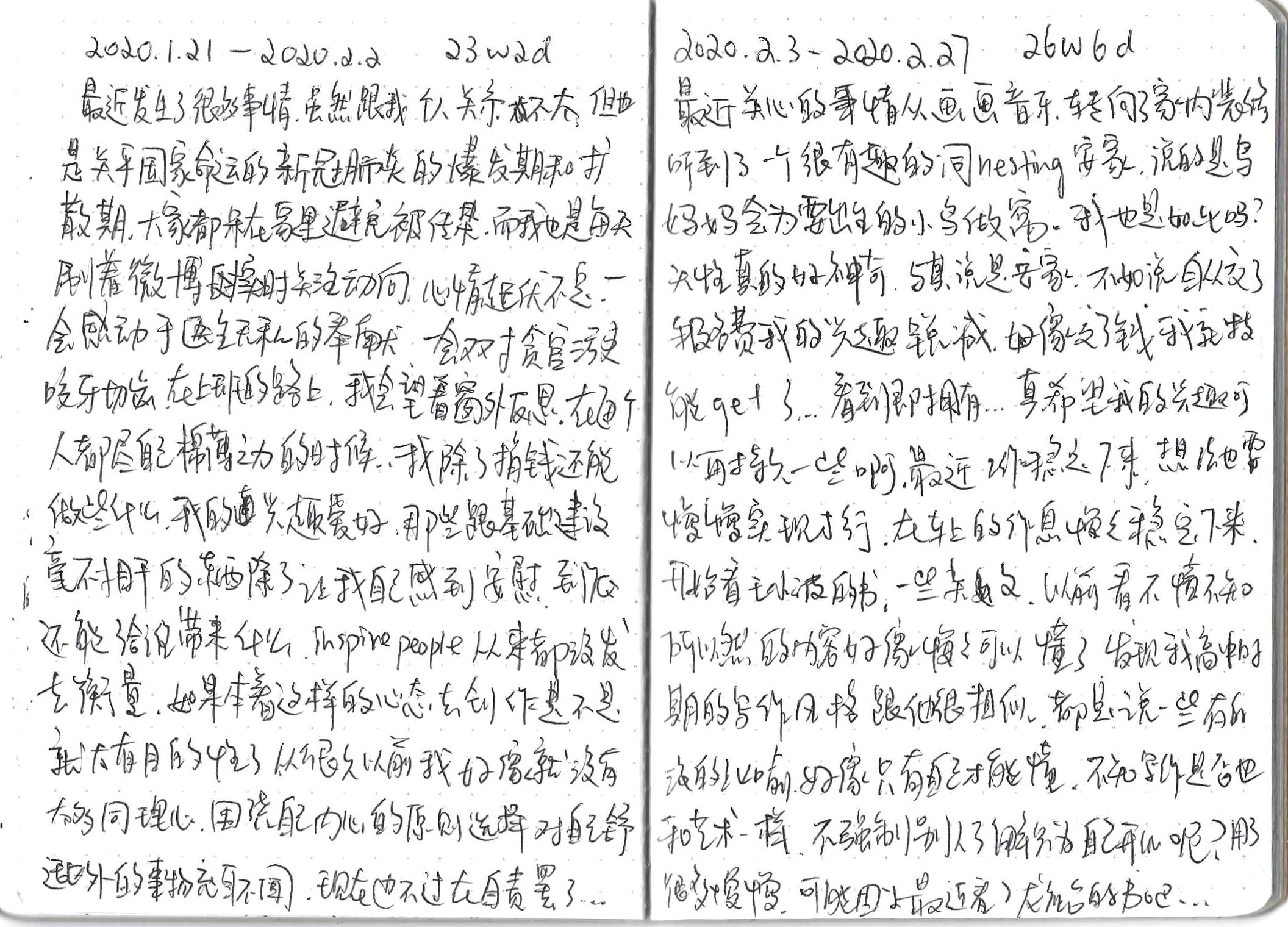 A diary I started around 7 weeks of pregnancy until after delivery. I went back to China around 12 weeks to visit my family, after coming back, my grandpa died at the age of 94, the COVID pandemic began, and I started to work from home since then. It's a collection of my struggling and conflicted emotions and thoughts around life, death, career, family, everything happening around me.