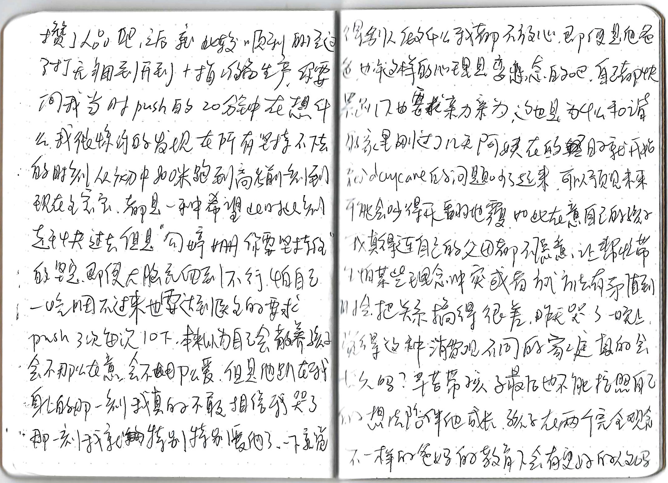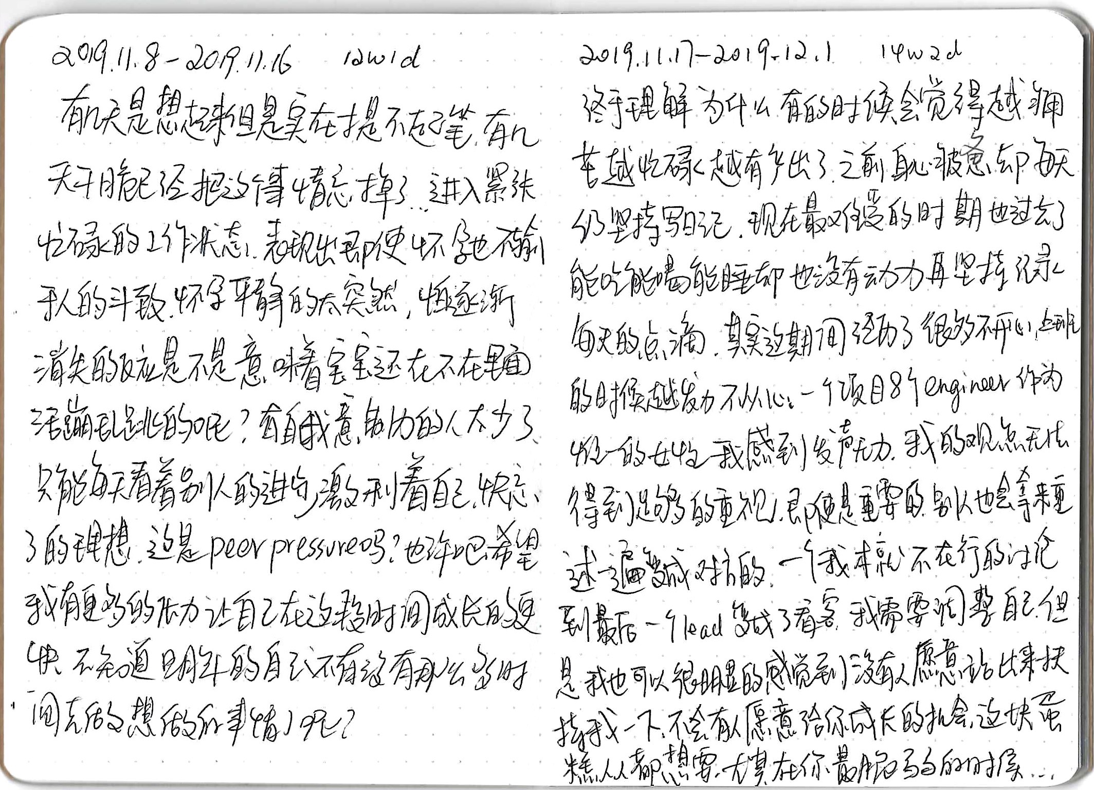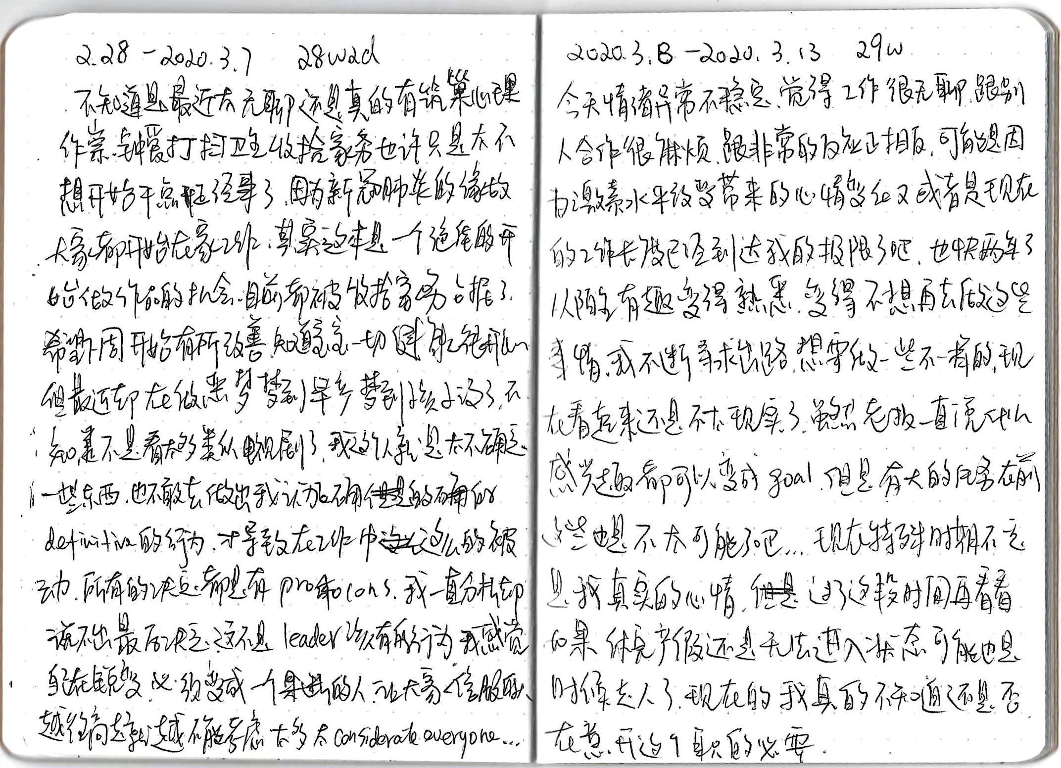 A diary I started around 7 weeks of pregnancy until after delivery. I went back to China around 12 weeks to visit my family, after coming back, my grandpa died at the age of 94, the COVID pandemic began, and I started to work from home since then. It's a collection of my struggling and conflicted emotions and thoughts around life, death, career, family, everything happening around me.